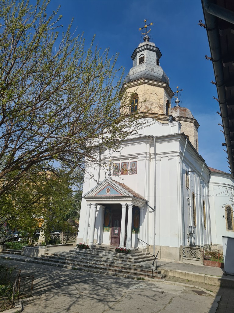 Biserica așezată într-un cartier cu numeroase clădiri vechi și blocuri