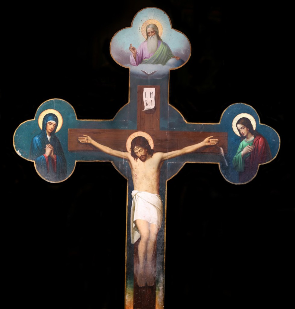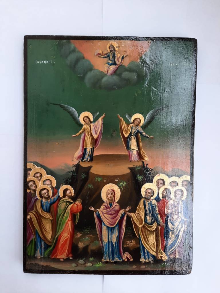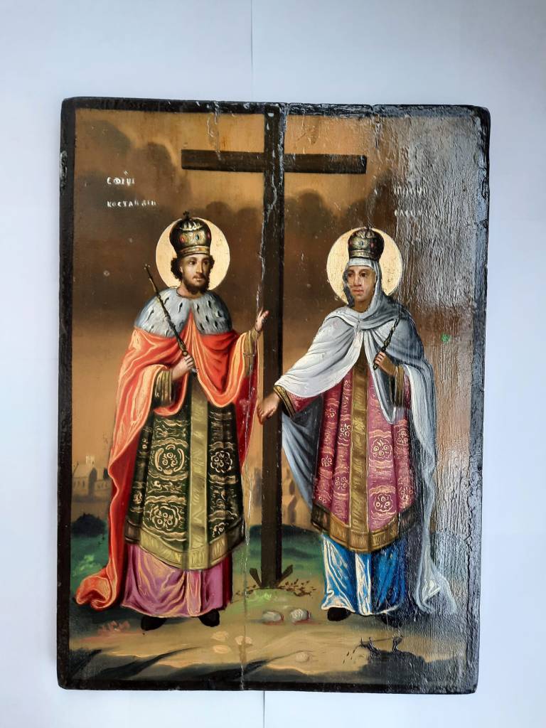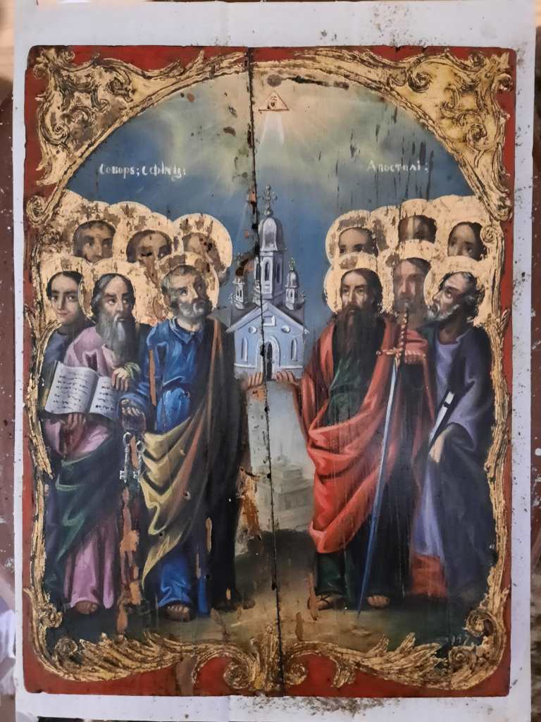 , icoana pictata de Nae Pantelimonescu in anul 1862. Daruita Bisericii Lucaci de breasla cofetarilor. La baza acesteia apare blazonul Principatelor Romane.